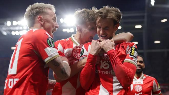 據(jù)《圖片報(bào)》消息,121年過(guò)去了,美因茨終于第一次闖進(jìn)歐洲賽事八強(qiáng)。在歐協(xié)聯(lián)1/8決賽次回合中,美因茨主場(chǎng)2比0擊敗奧洛穆茨,在首回合0比0戰(zhàn)平的基礎(chǔ)上成功晉級(jí)。波施在第46分鐘打破僵局,席布第83分鐘鎖定勝局,主場(chǎng)31000名球迷共同見(jiàn)證了這一歷史性時(shí)刻。
